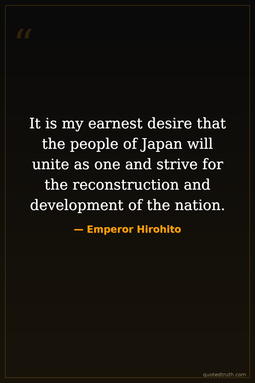 It is my earnest desire that the people of Japan will unite as one and strive for the reconstruction and development of the nation.