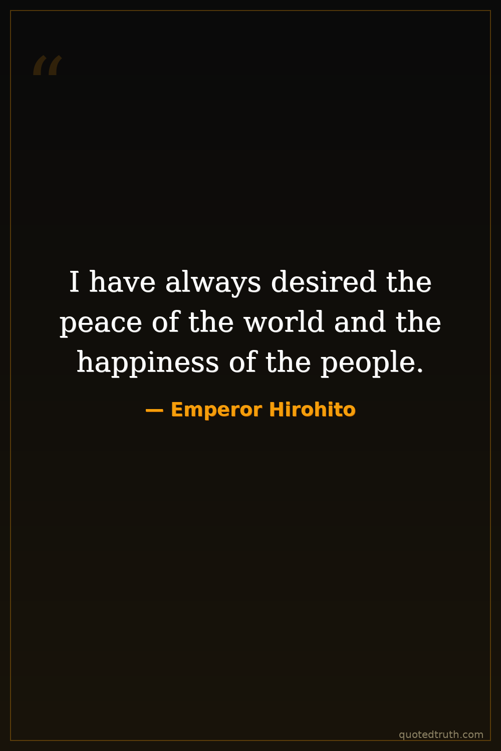 I have always desired the peace of the world and the happiness of the people.