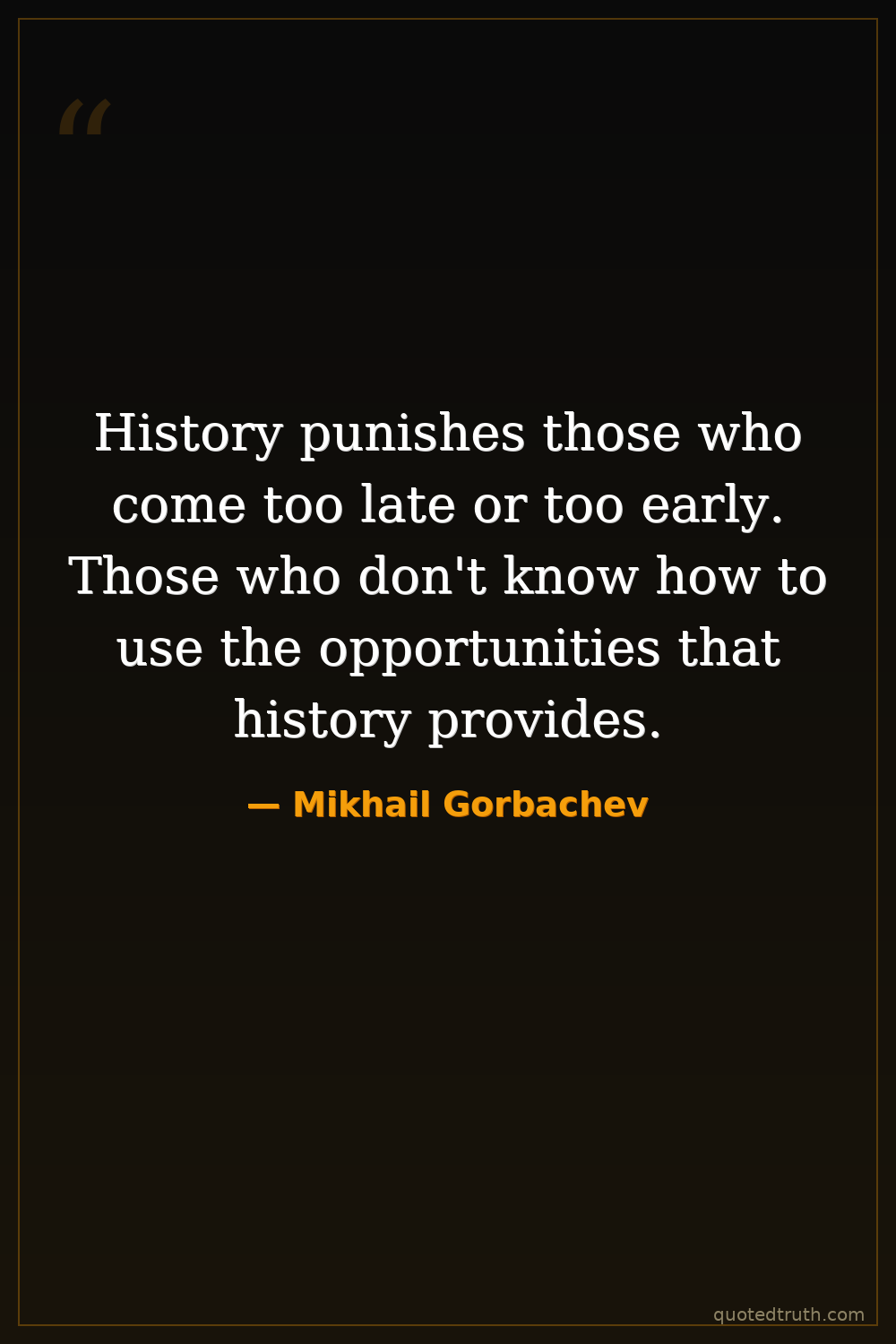 History punishes those who come too late or too early. Those who don't know how to use the opportunities that history provides.