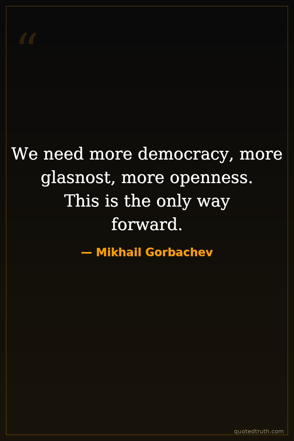 We need more democracy, more glasnost, more openness. This is the only way forward.