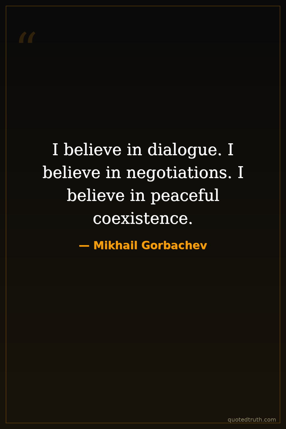 I believe in dialogue. I believe in negotiations. I believe in peaceful coexistence.