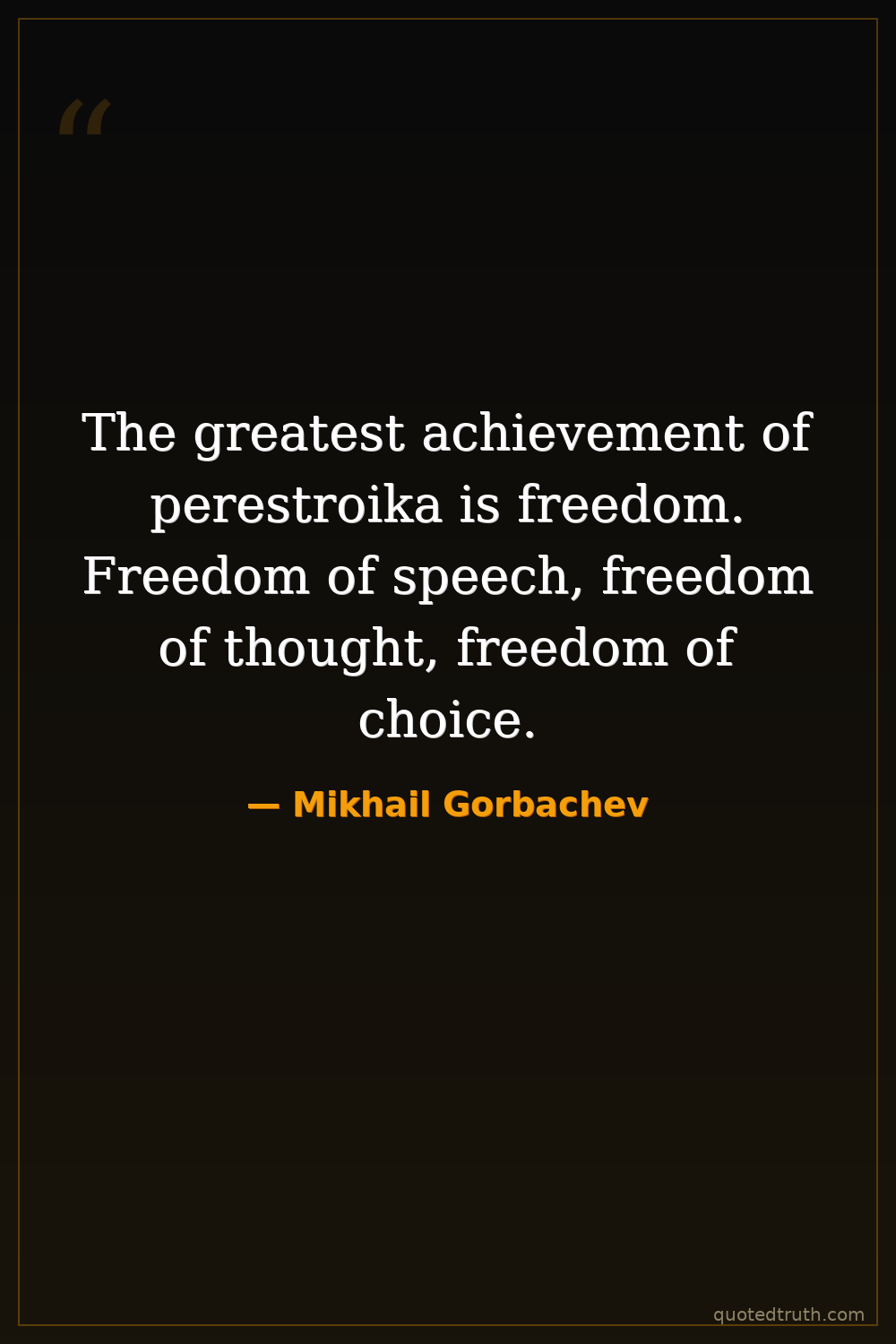 The greatest achievement of perestroika is freedom. Freedom of speech, freedom of thought, freedom of choice.