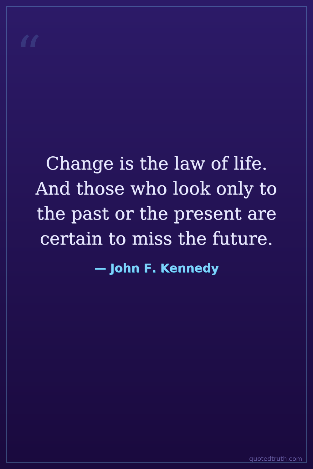 Change is the law of life. And those who look only to the past or the present are certain to miss the future.