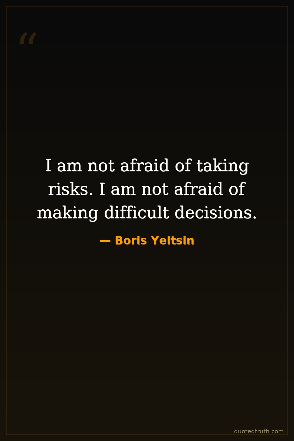 I am not afraid of taking risks. I am not afraid of making difficult decisions.