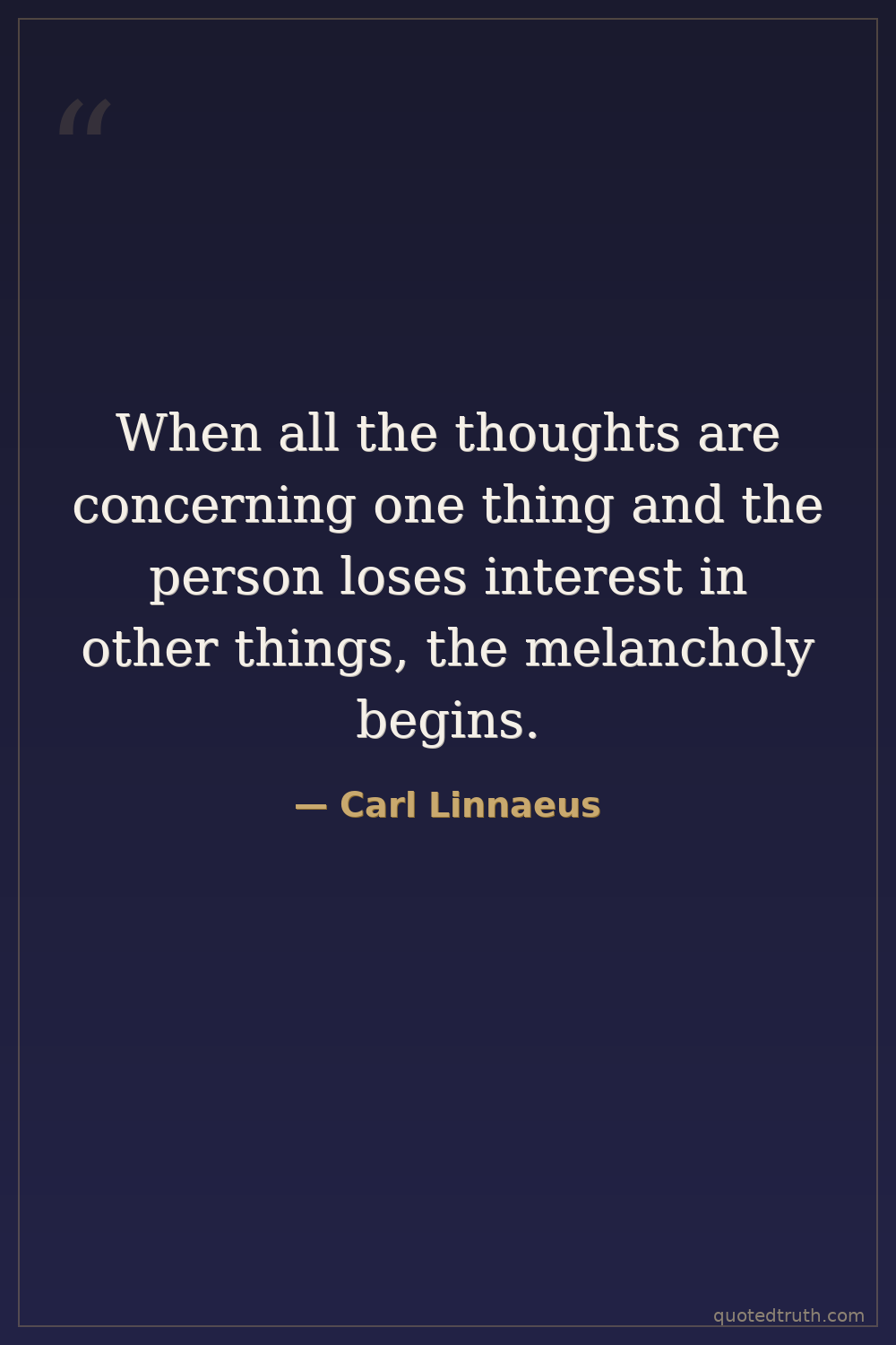 When all the thoughts are concerning one thing and the person loses interest in other things, the melancholy begins.