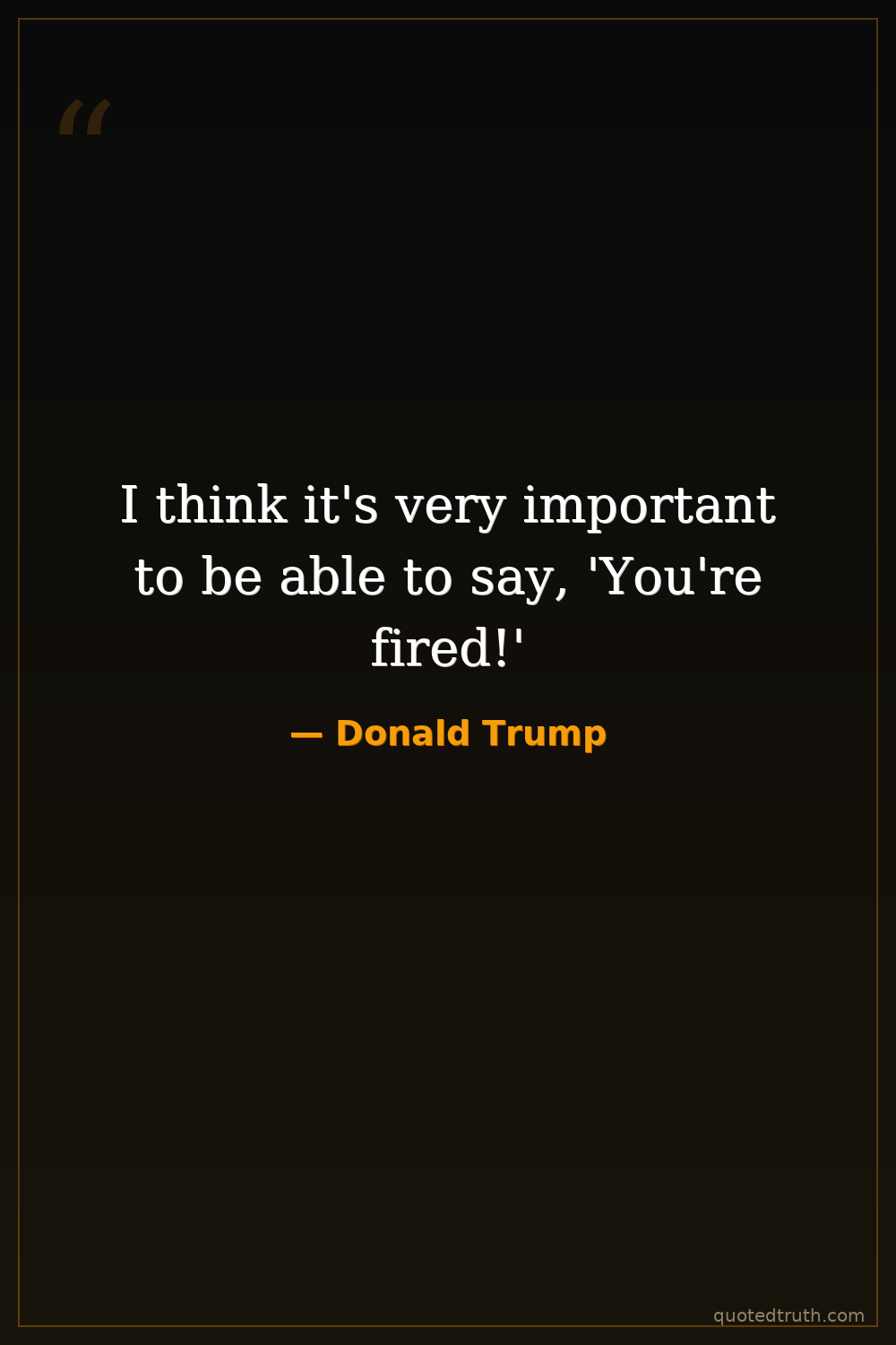 I think it's very important to be able to say, 'You're fired!'