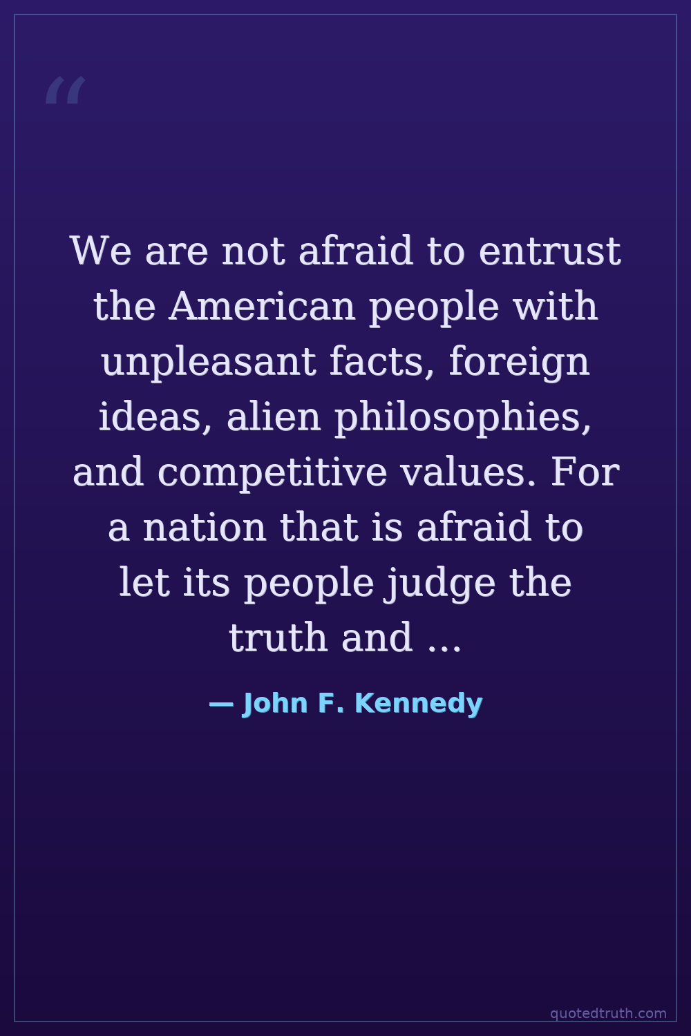 We are not afraid to entrust the American people with unpleasant facts, foreign ideas, alien philosophies, and competitive values. For a nation that is afraid to let its people judge the truth and falsehood in an open market is a nation that is afraid of its people.