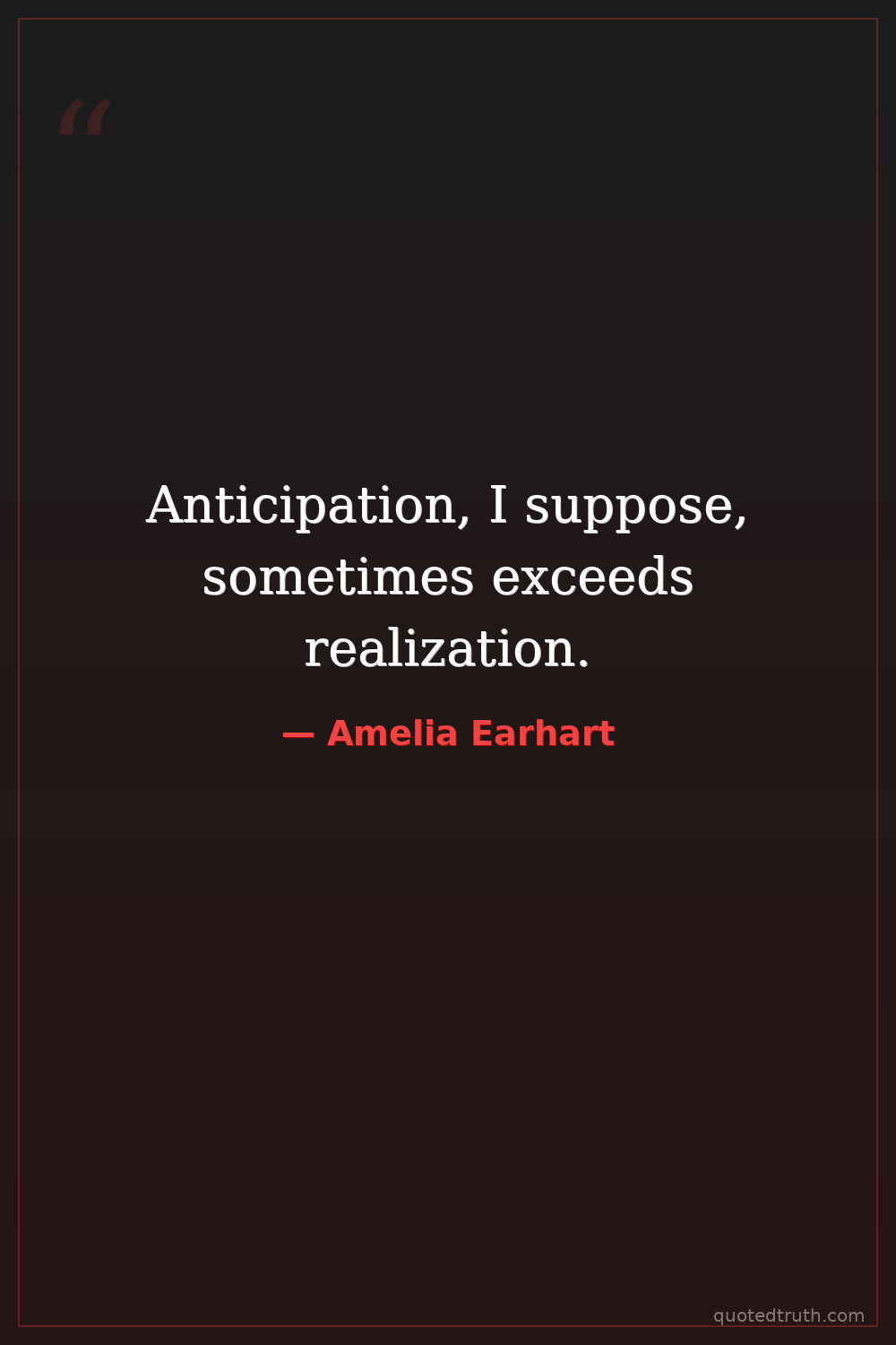 Anticipation, I suppose, sometimes exceeds realization.
