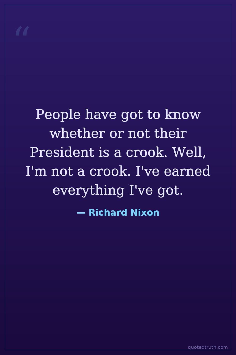 People have got to know whether or not their President is a crook. Well, I'm not a crook. I've earned everything I've got.