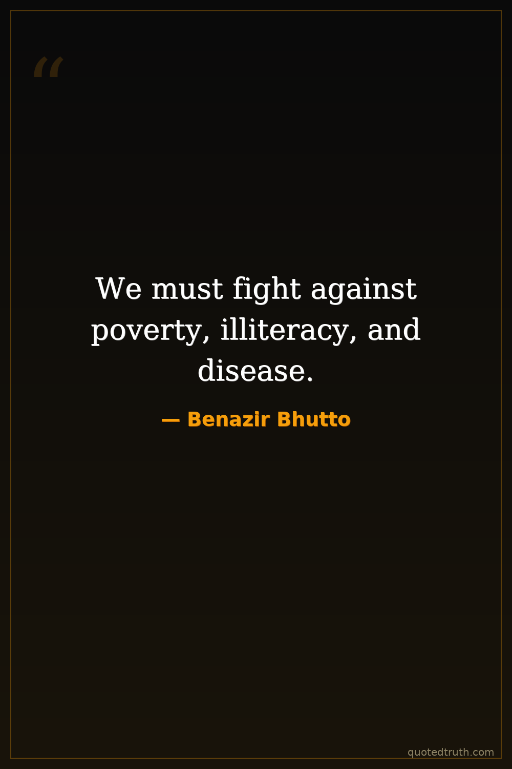 We must fight against poverty, illiteracy, and disease.
