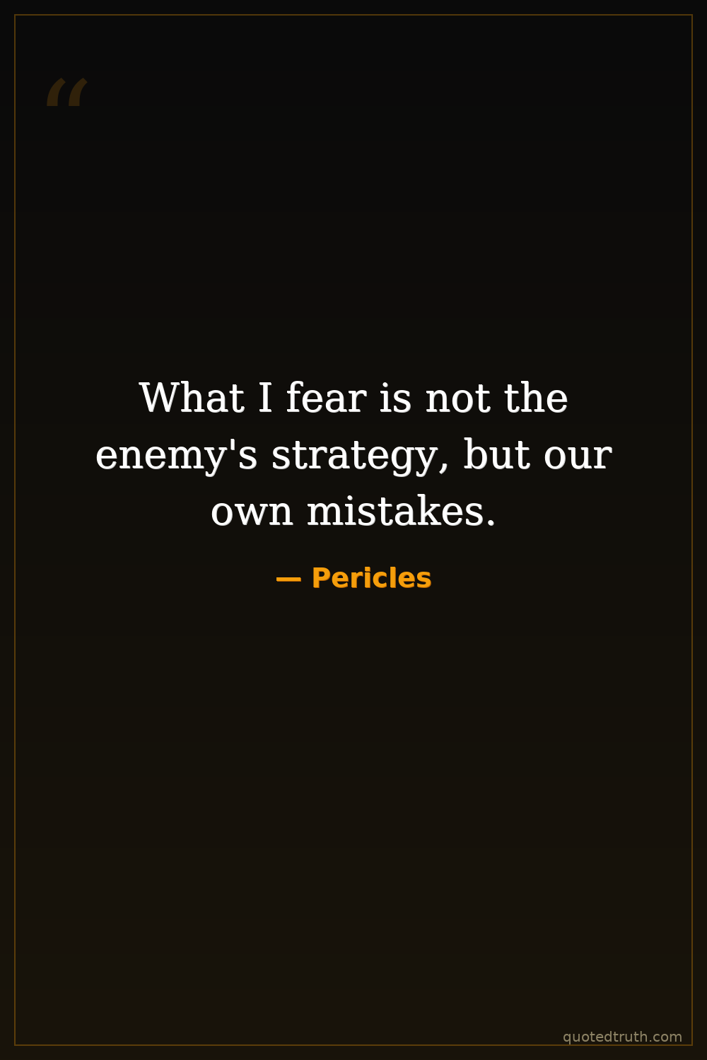 What I fear is not the enemy's strategy, but our own mistakes.