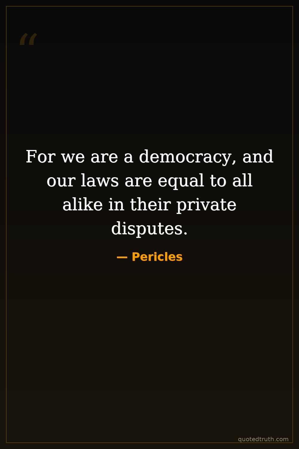 For we are a democracy, and our laws are equal to all alike in their private disputes.