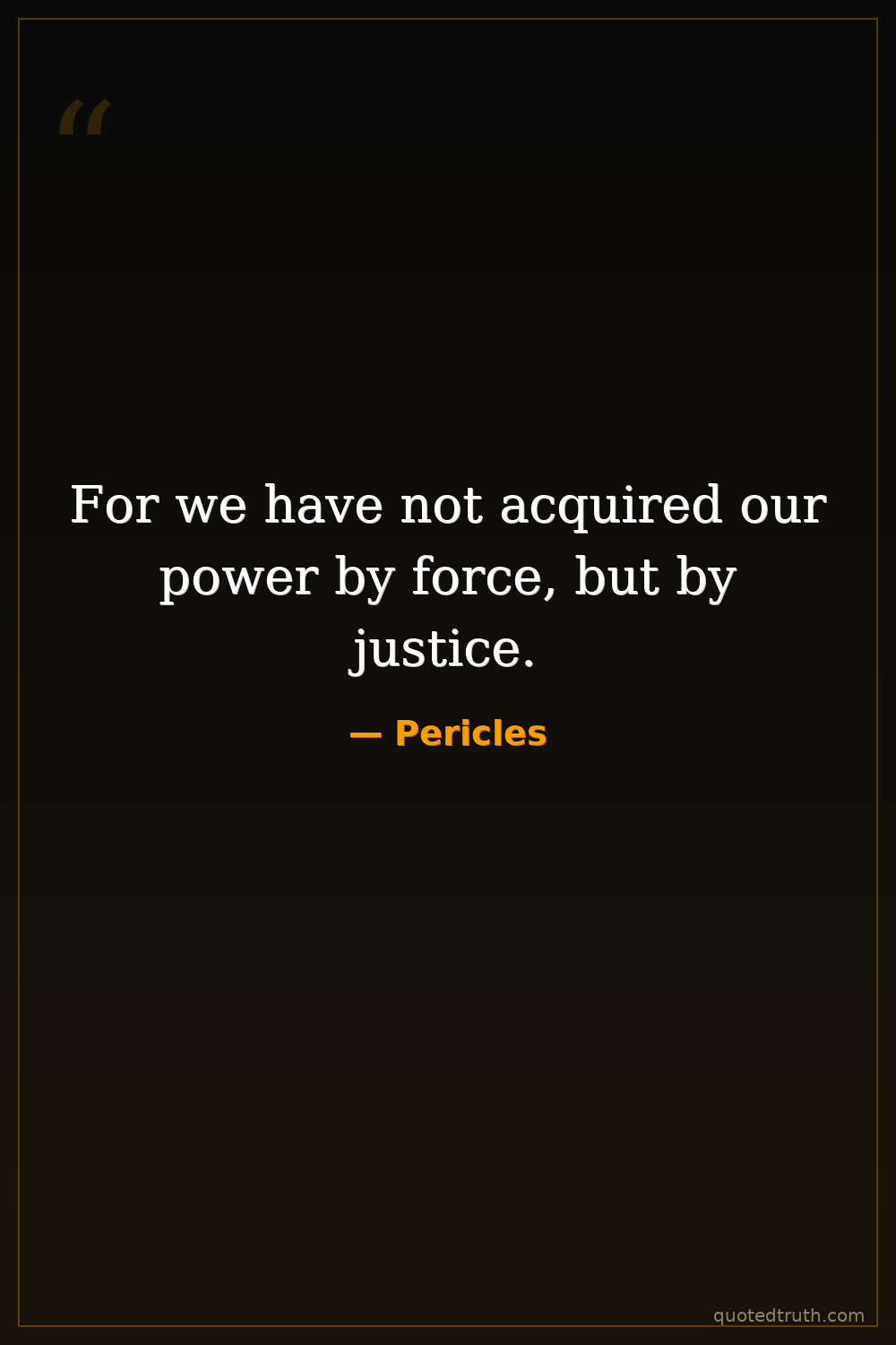 For we have not acquired our power by force, but by justice.