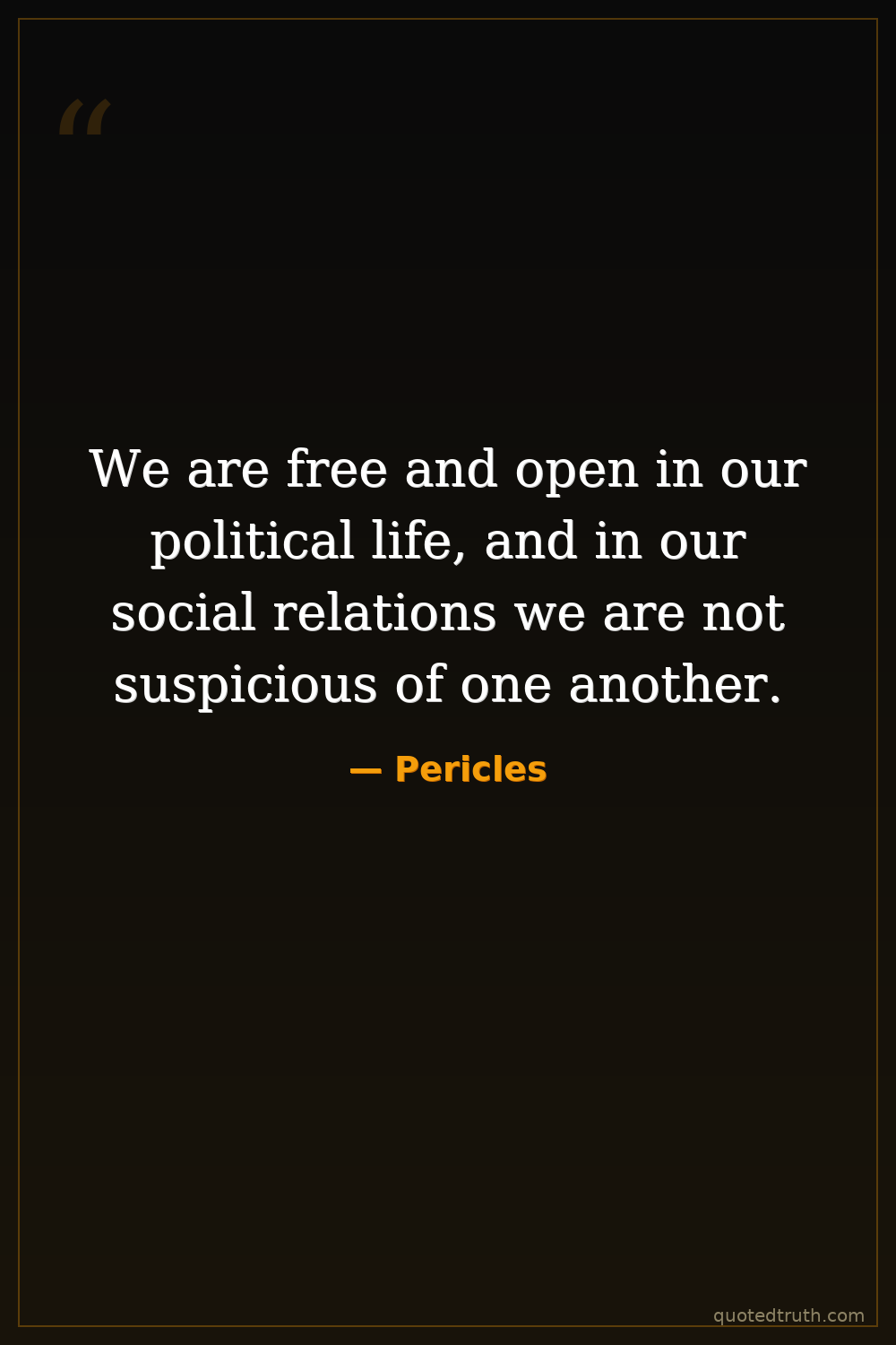 We are free and open in our political life, and in our social relations we are not suspicious of one another.