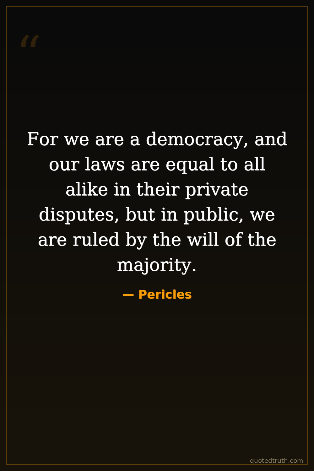 For we are a democracy, and our laws are equal to all alike in their private disputes, but in public, we are ruled by the will of the majority.