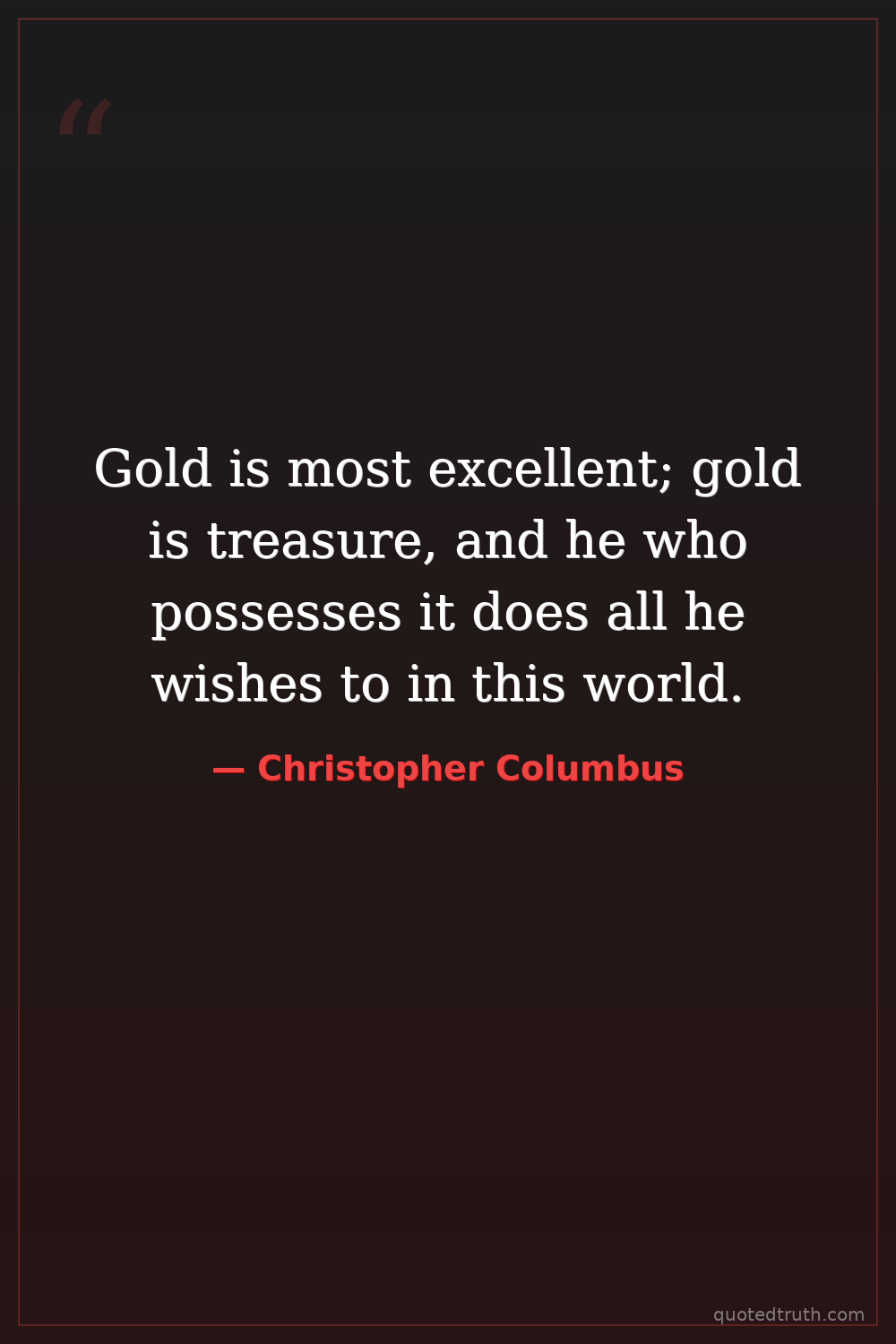 Gold is most excellent; gold is treasure, and he who possesses it does all he wishes to in this world.