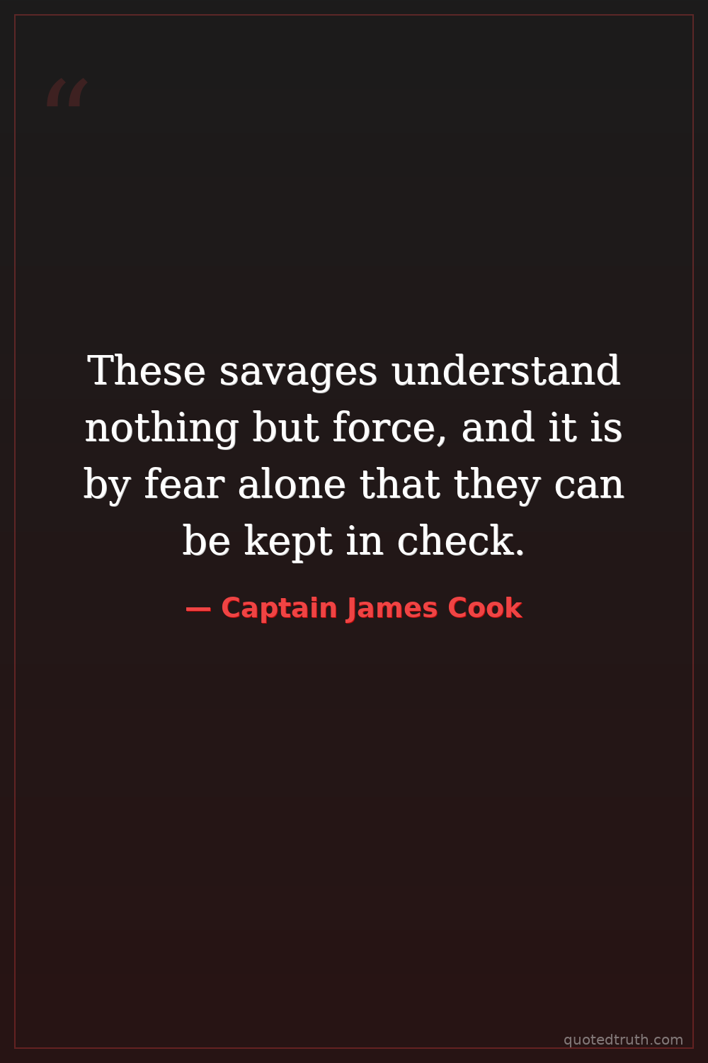Philosophical"The natives are a cowardly and treacherous people, wherefore we must always be on our guard."