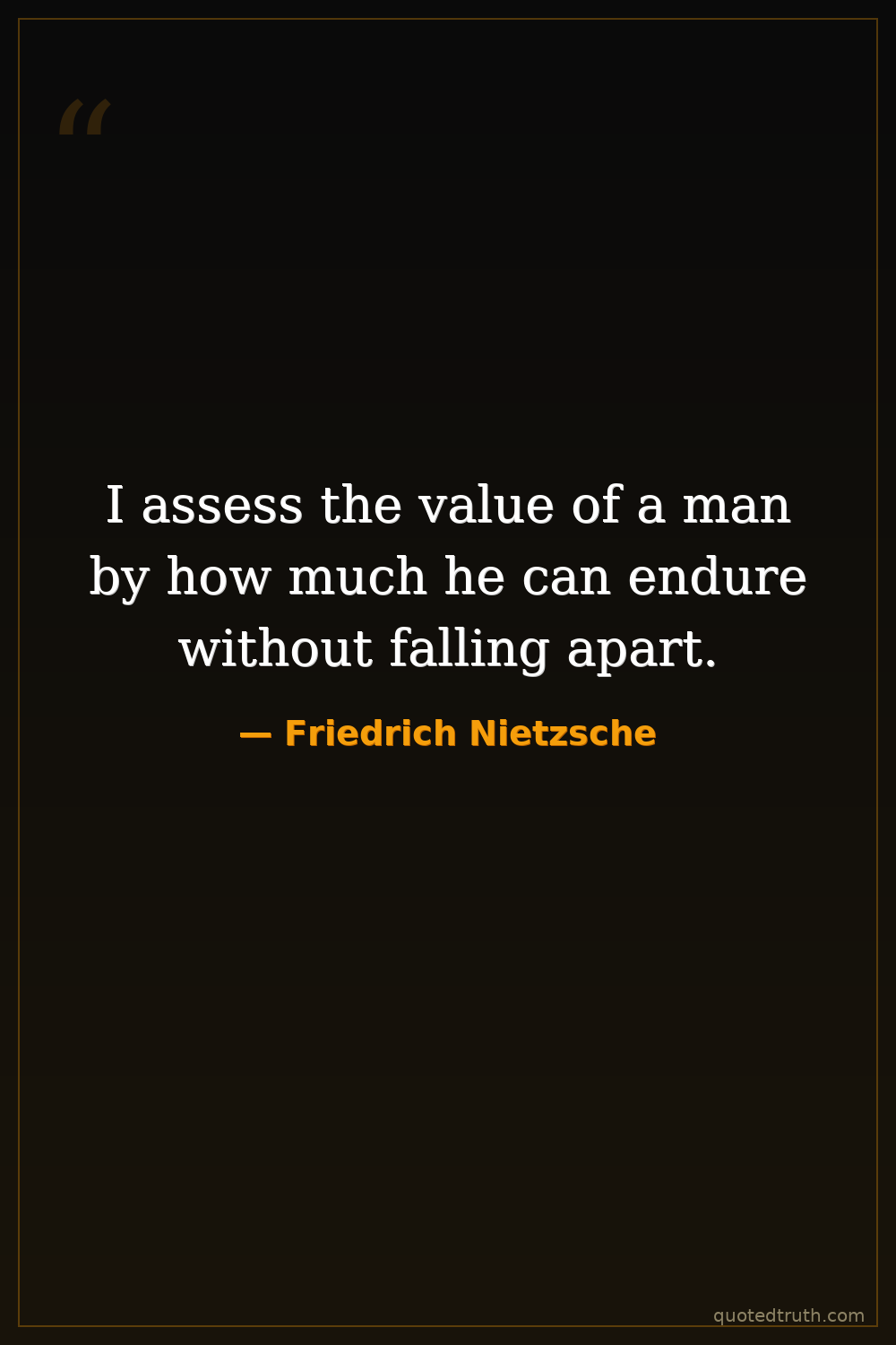 I assess the value of a man by how much he can endure without falling apart.