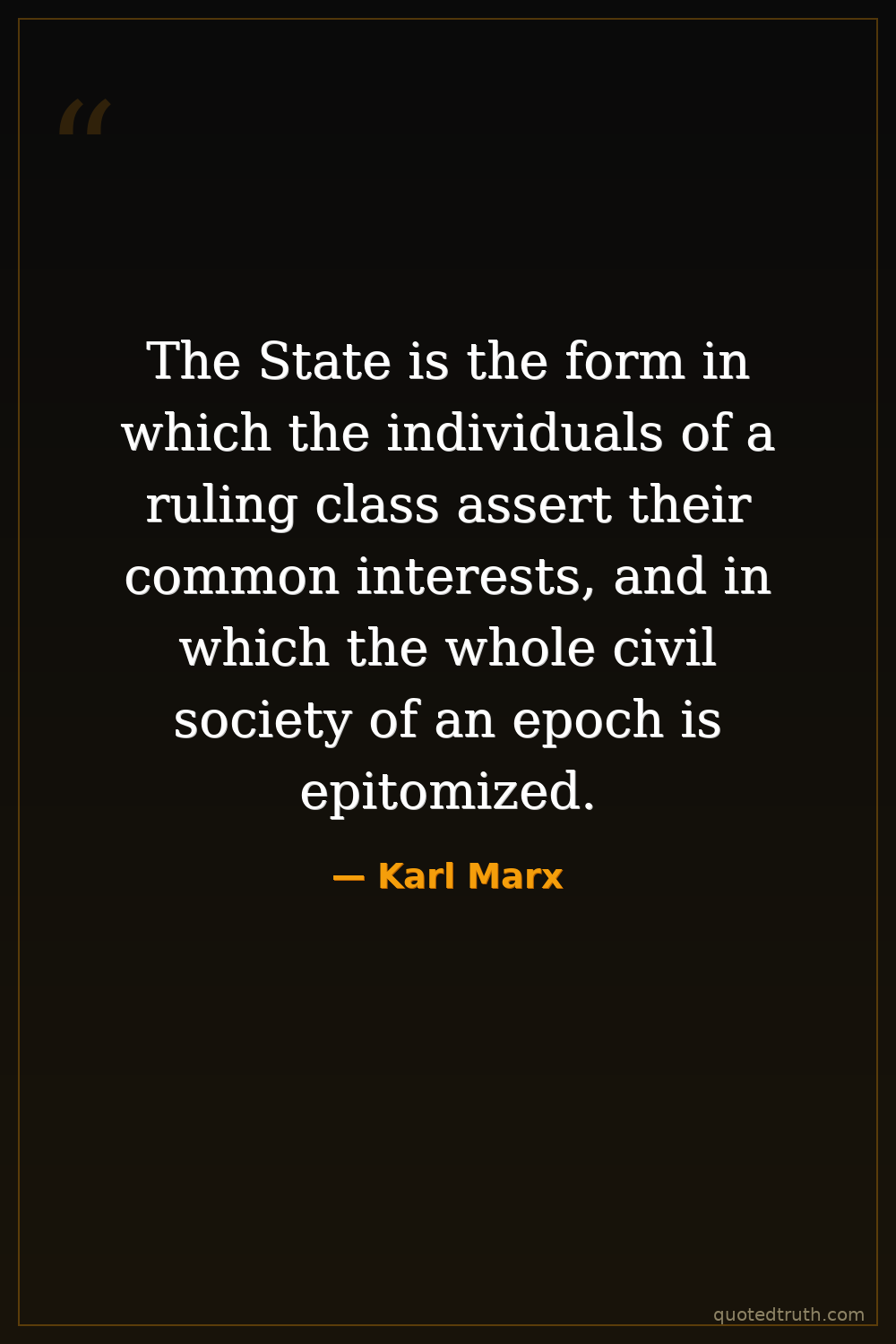 The State is the form in which the individuals of a ruling class assert their common interests, and in which the whole civil society of an epoch is epitomized.