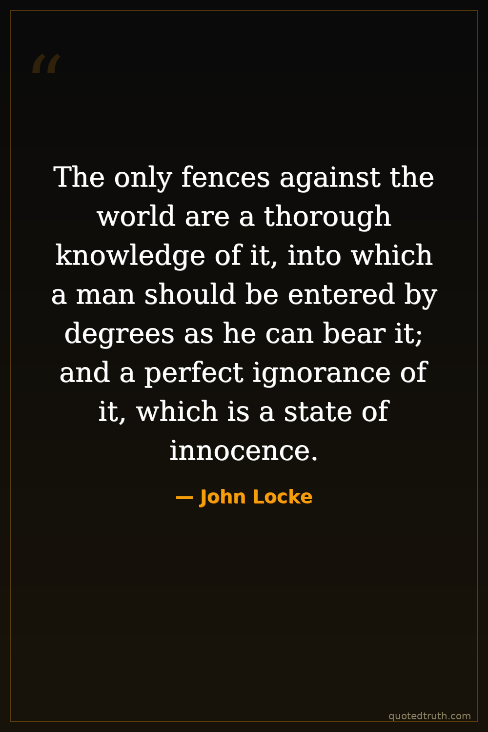 The only fences against the world are a thorough knowledge of it, into which a man should be entered by degrees as he can bear it; and a perfect ignorance of it, which is a state of innocence.