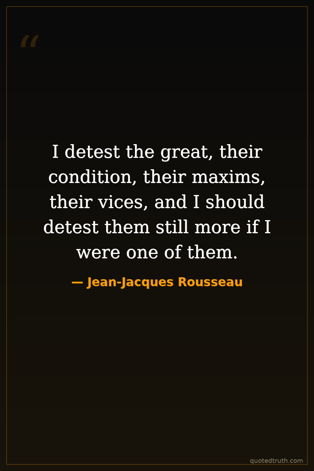 I detest the great, their condition, their maxims, their vices, and I should detest them still more if I were one of them.