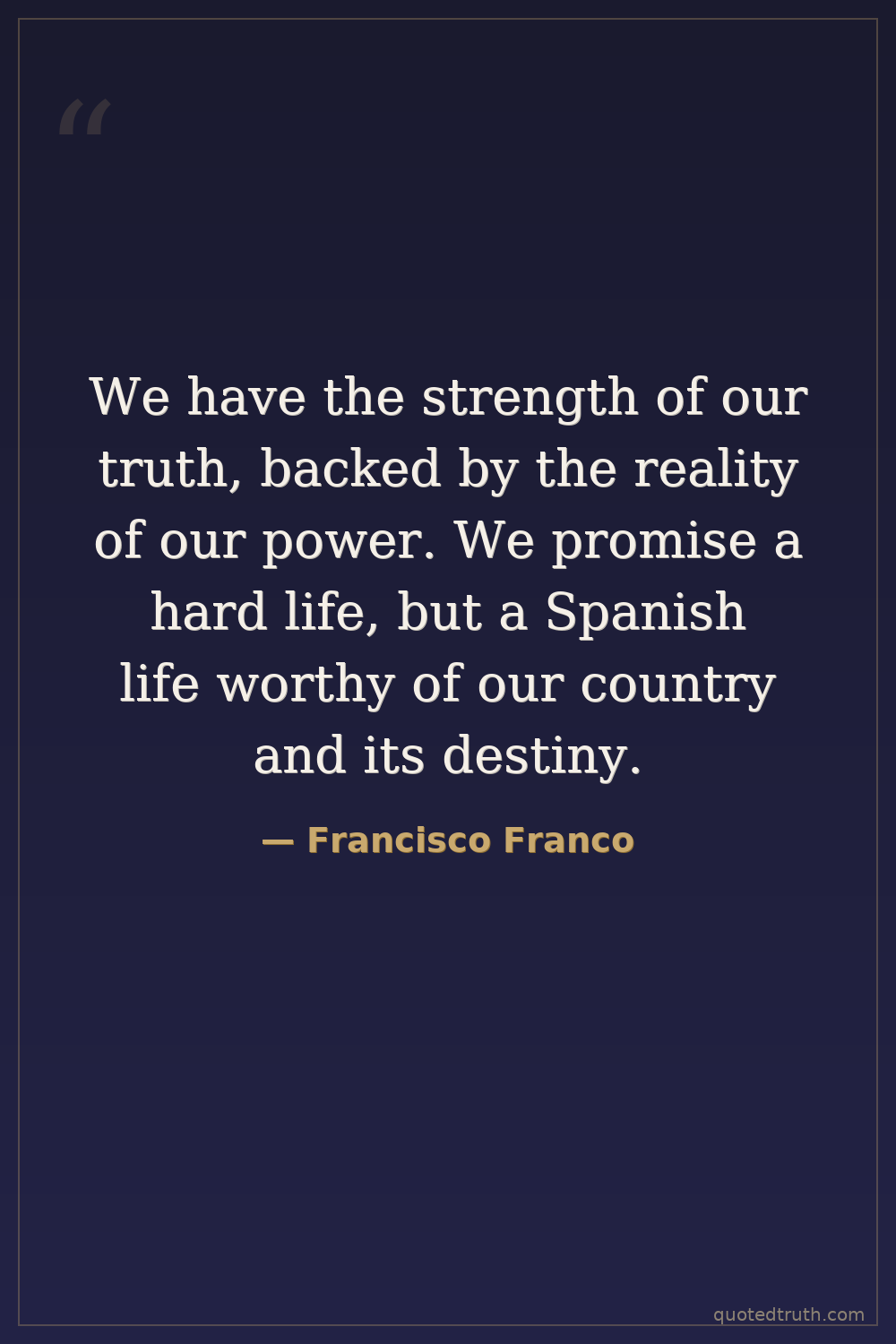 We have the strength of our truth, backed by the reality of our power. We promise a hard life, but a Spanish life worthy of our country and its destiny.