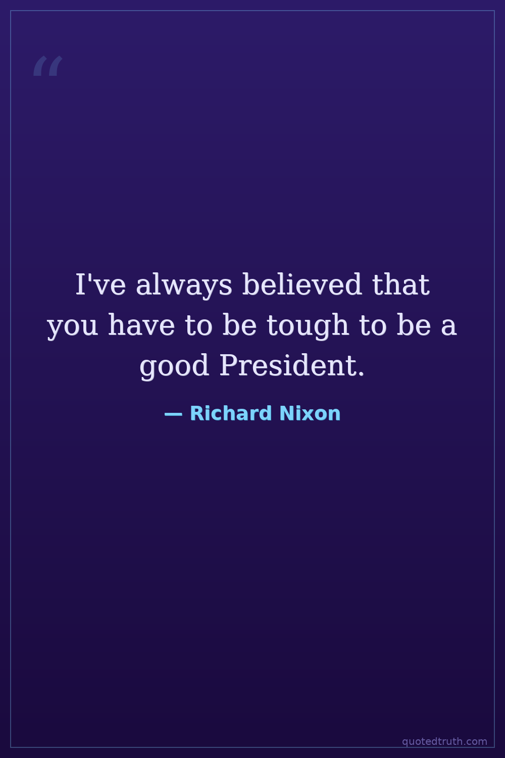 I've always believed that you have to be tough to be a good President.