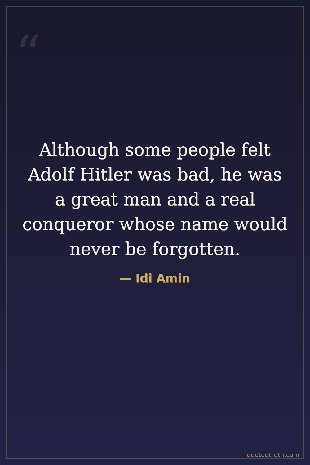 Although some people felt Adolf Hitler was bad, he was a great man and a real conqueror whose name would never be forgotten.