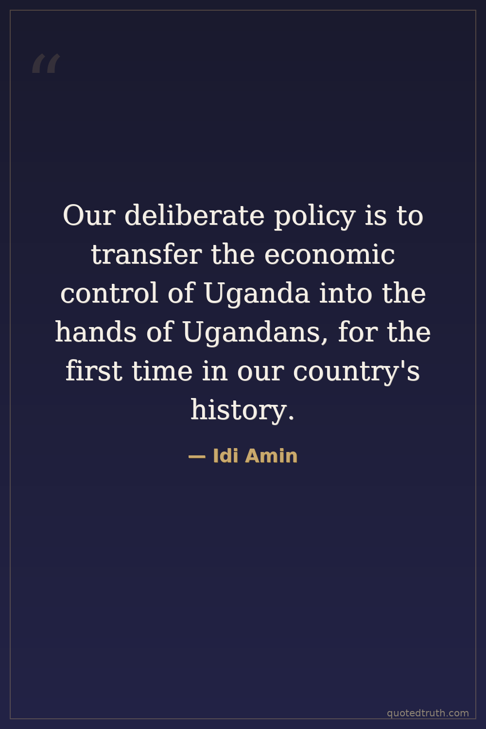 Our deliberate policy is to transfer the economic control of Uganda into the hands of Ugandans, for the first time in our country's history.