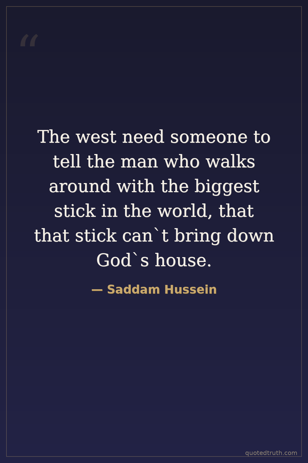 The west need someone to tell the man who walks around with the biggest stick in the world, that that stick can`t bring down God`s house.