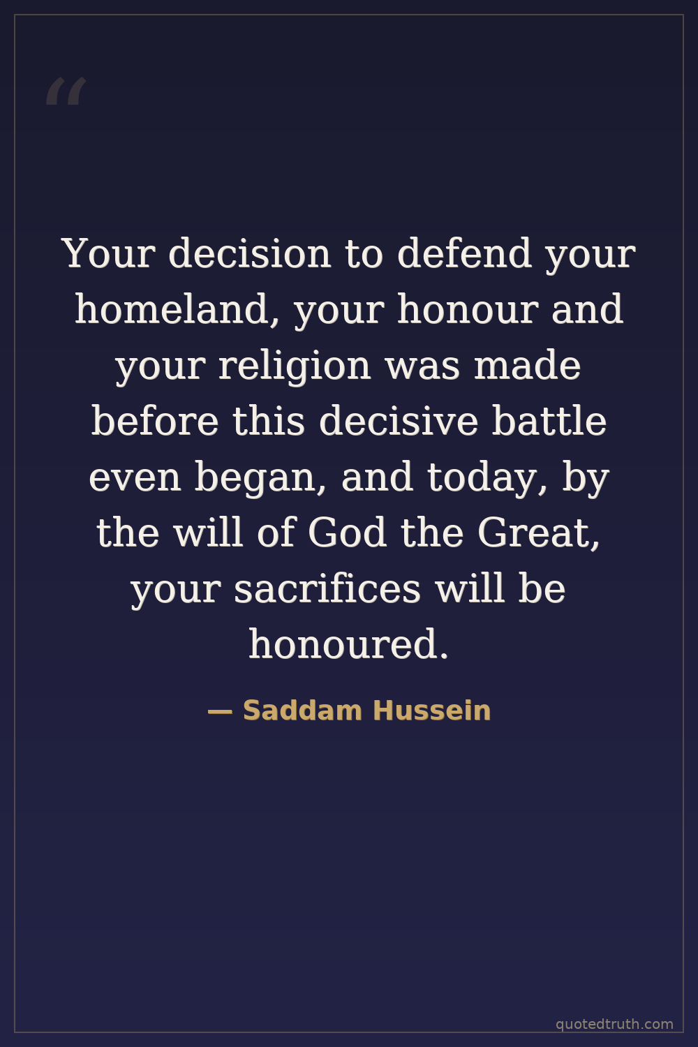 Your decision to defend your homeland, your honour and your religion was made before this decisive battle even began, and today, by the will of God the Great, your sacrifices will be honoured.