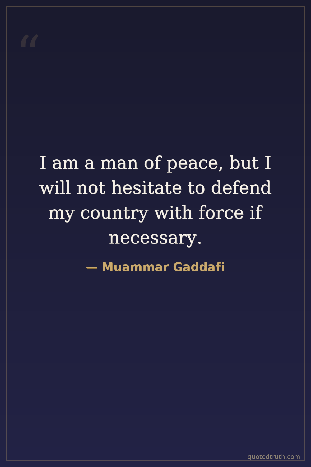 I am a man of peace, but I will not hesitate to defend my country with force if necessary.