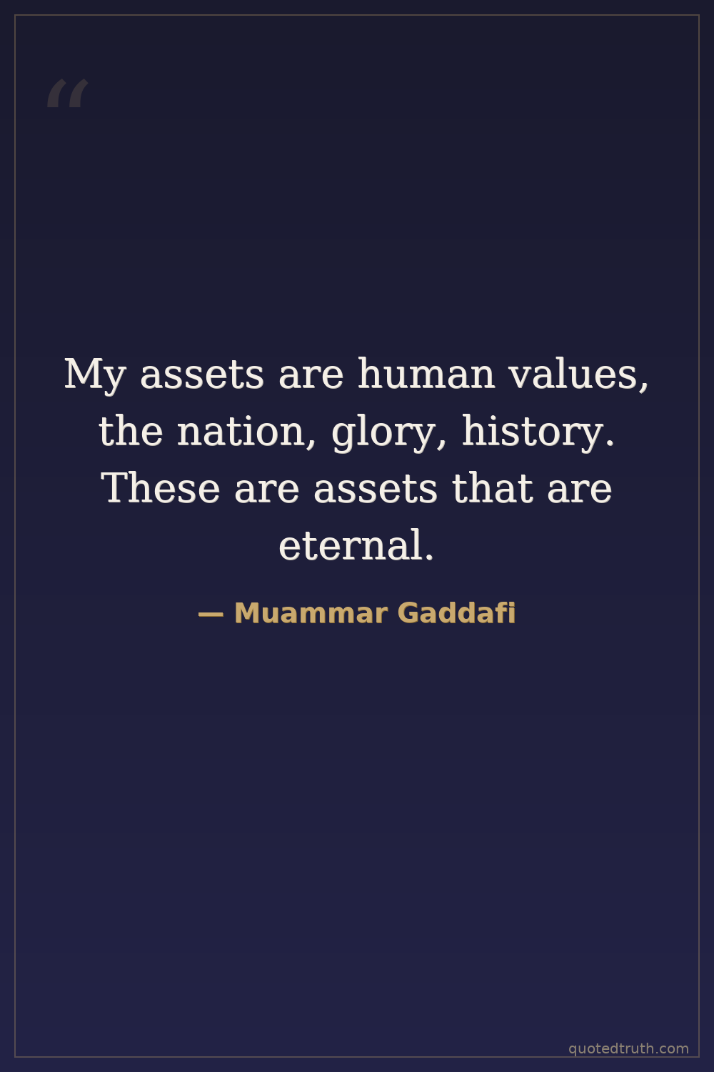 My assets are human values, the nation, glory, history. These are assets that are eternal.