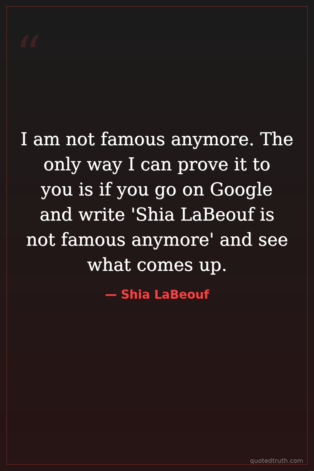 I am not famous anymore. The only way I can prove it to you is if you go on Google and write 'Shia LaBeouf is not famous anymore' and see what comes up.