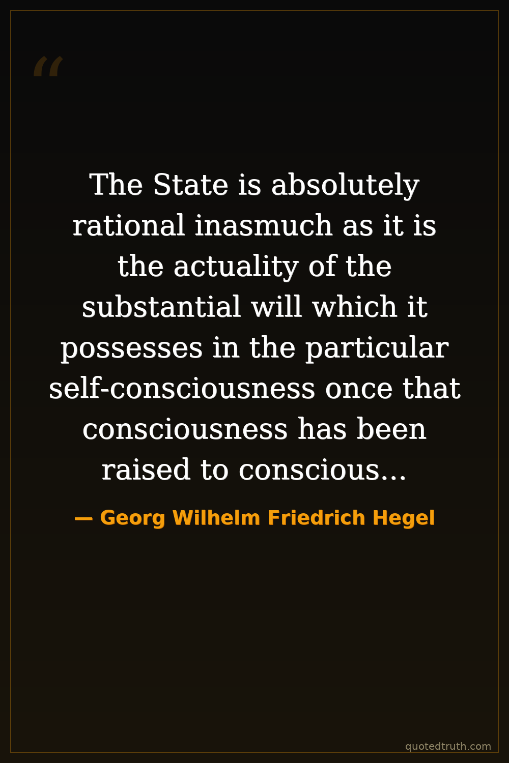 The State is absolutely rational inasmuch as it is the actuality of the substantial will which it possesses in the particular self-consciousness once that consciousness has been raised to consciousness of its universality.