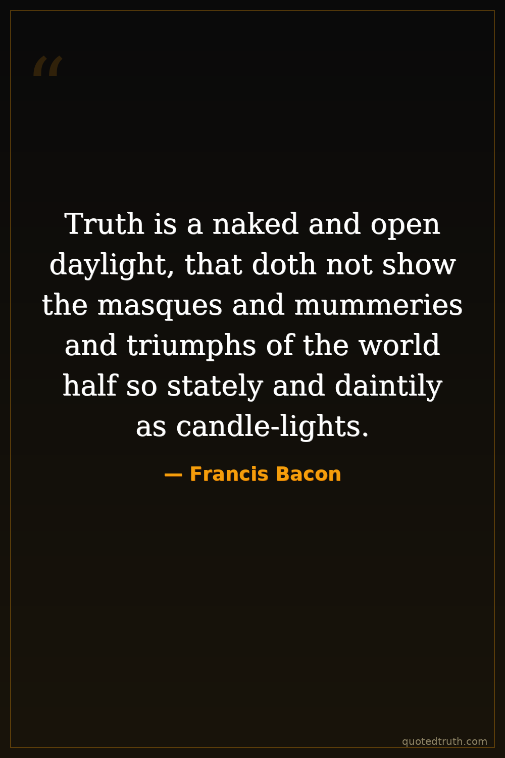 Truth is a naked and open daylight, that doth not show the masques and mummeries and triumphs of the world half so stately and daintily as candle-lights.