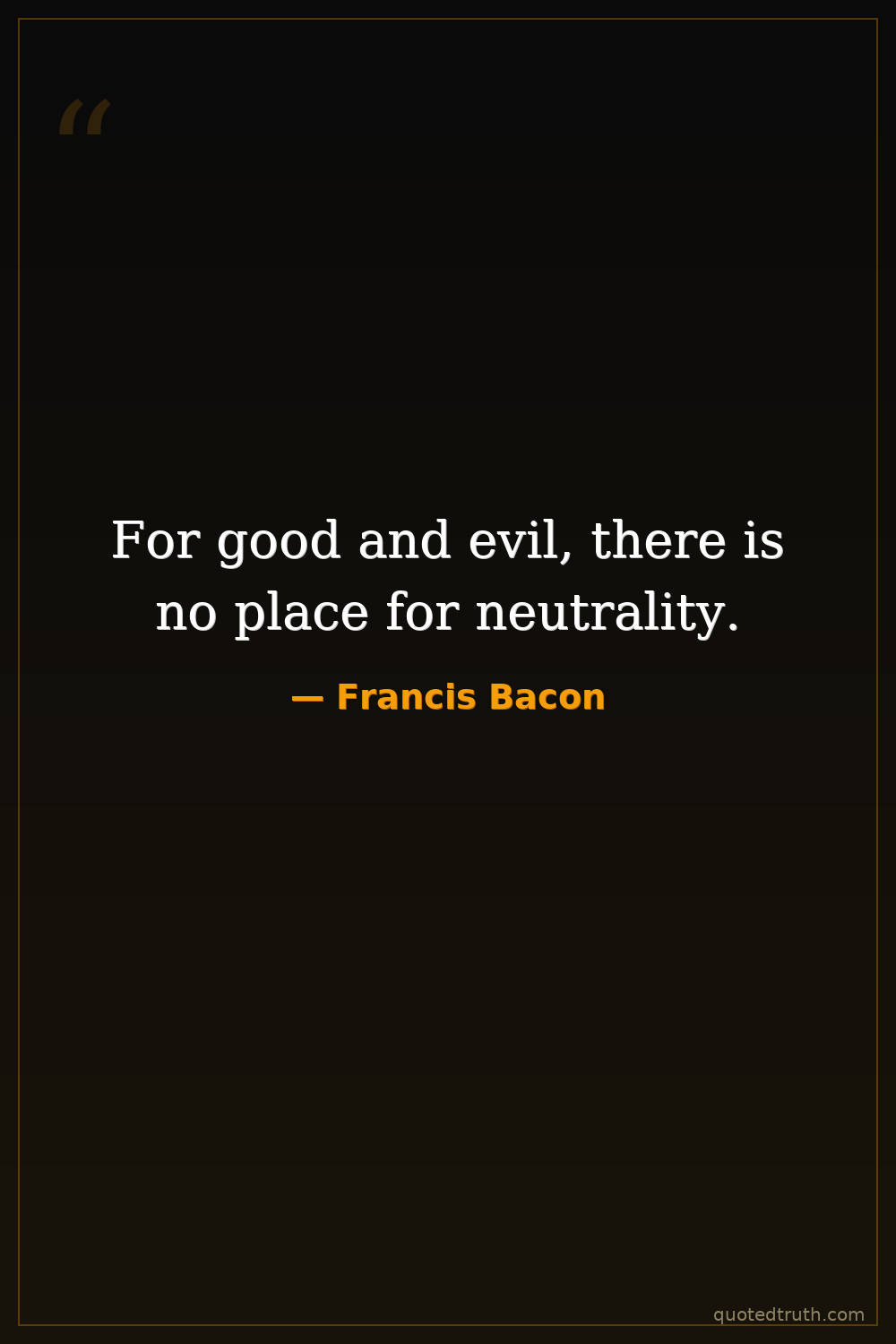 For good and evil, there is no place for neutrality.