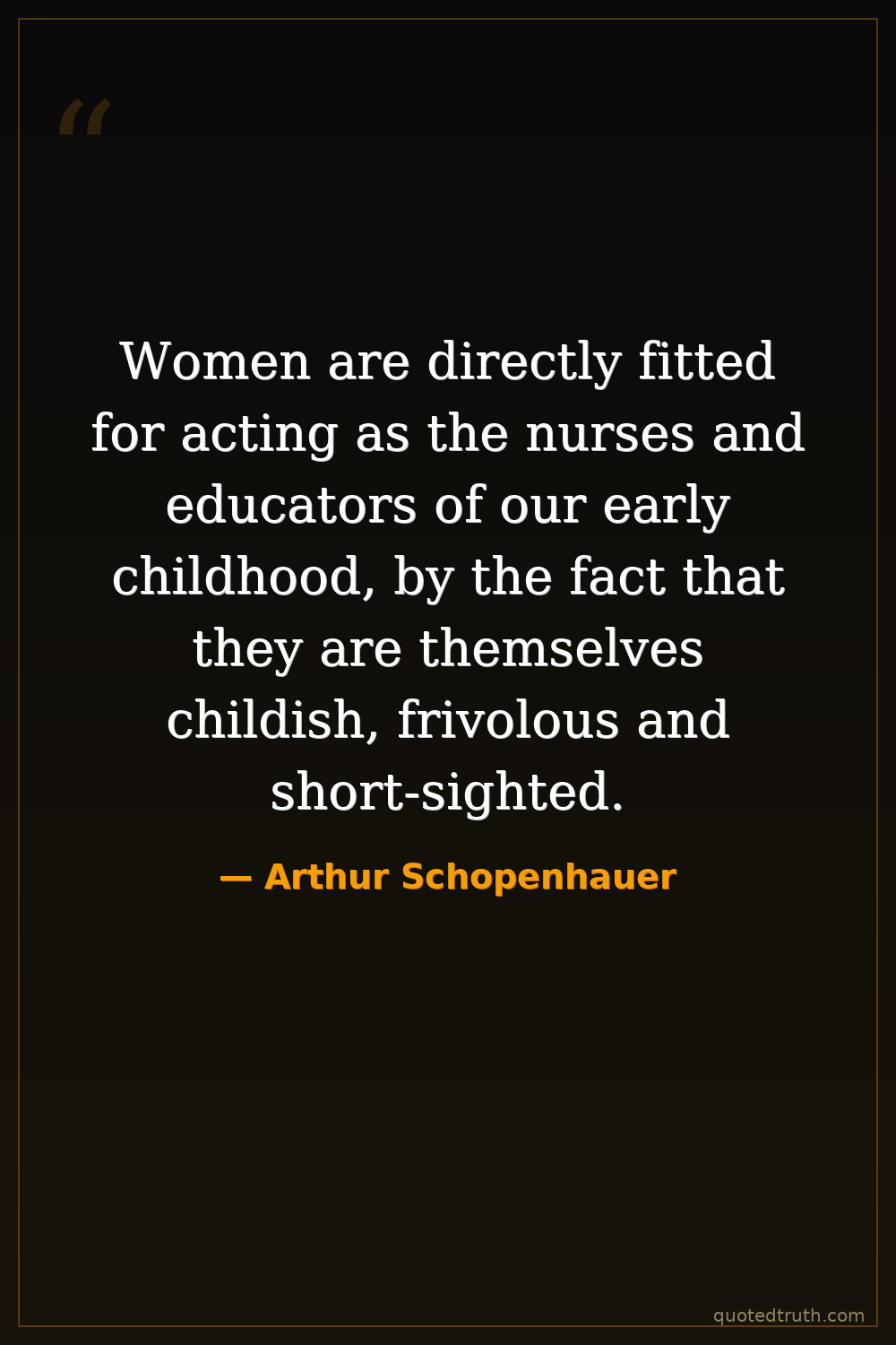 Women are directly fitted for acting as the nurses and educators of our early childhood, by the fact that they are themselves childish, frivolous and short-sighted.