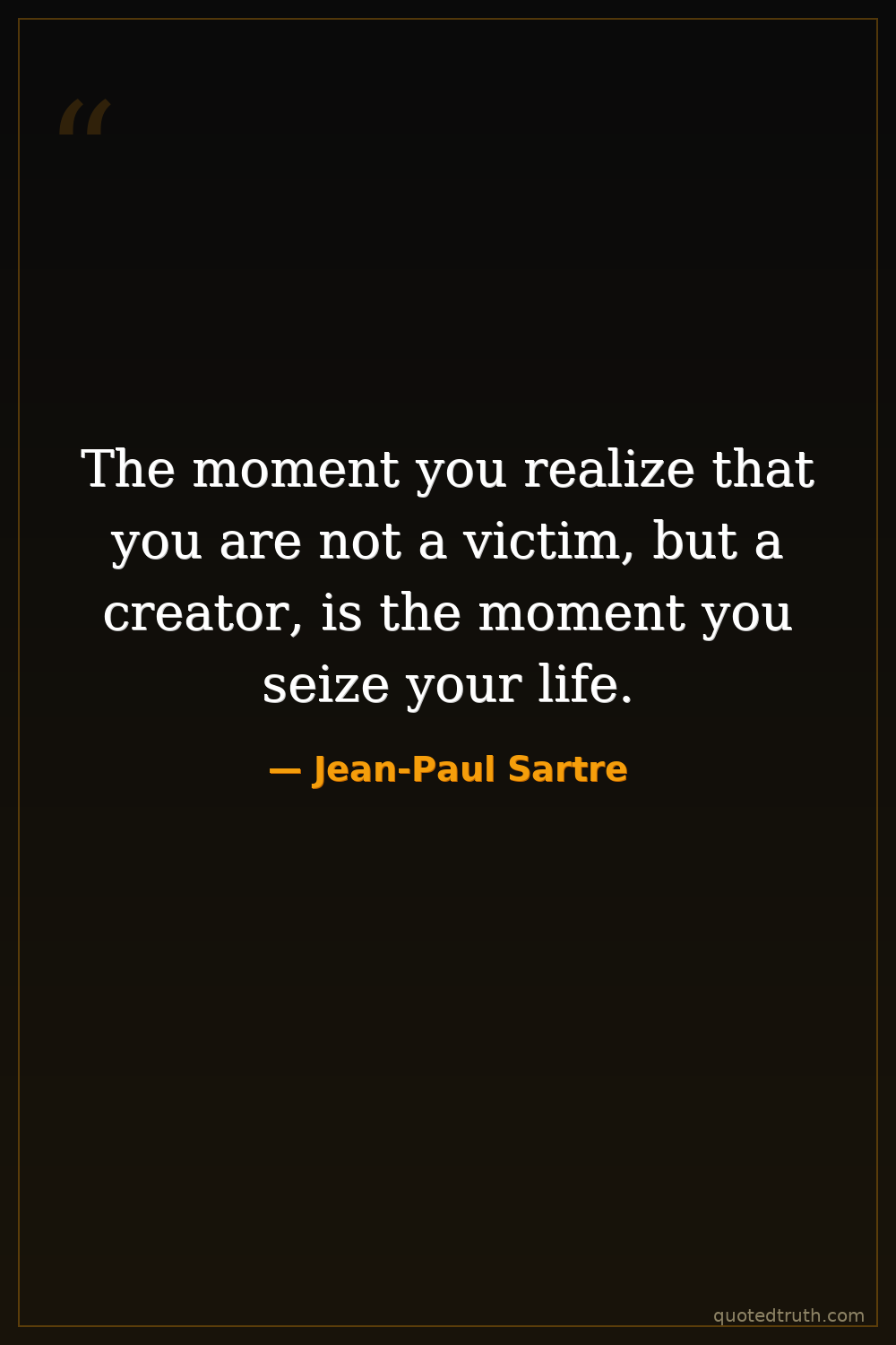 The moment you realize that you are not a victim, but a creator, is the moment you seize your life.