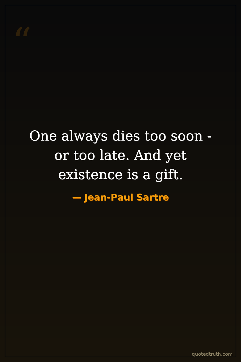 One always dies too soon - or too late. And yet existence is a gift.