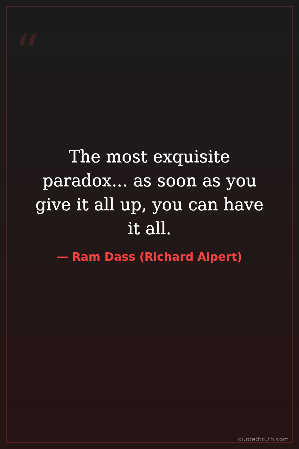 The most exquisite paradox... as soon as you give it all up, you can have it all.