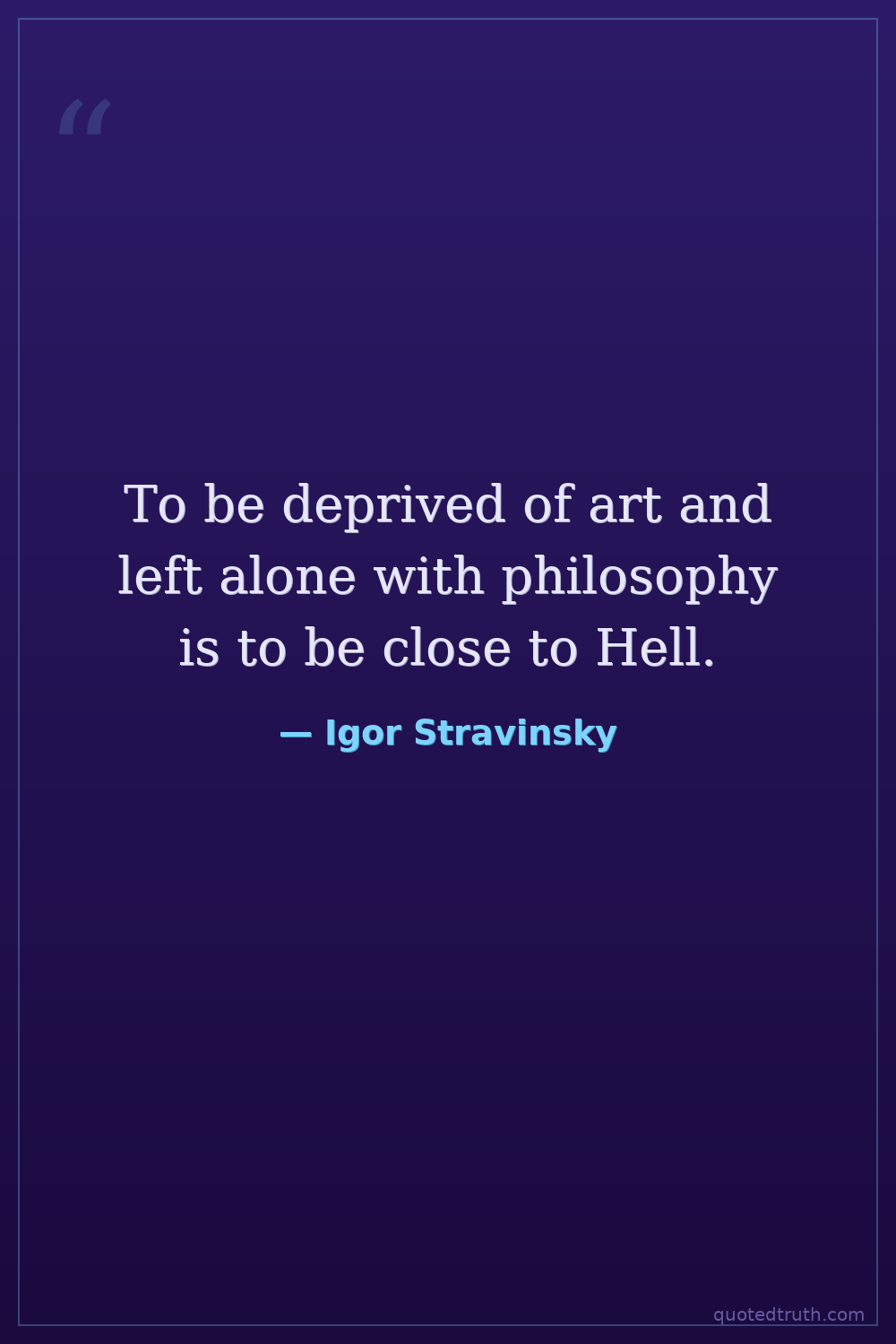 To be deprived of art and left alone with philosophy is to be close to Hell.