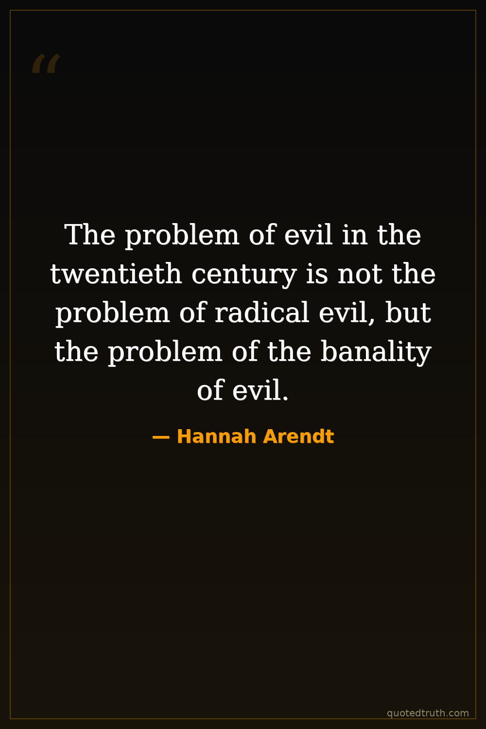The problem of evil in the twentieth century is not the problem of radical evil, but the problem of the banality of evil.