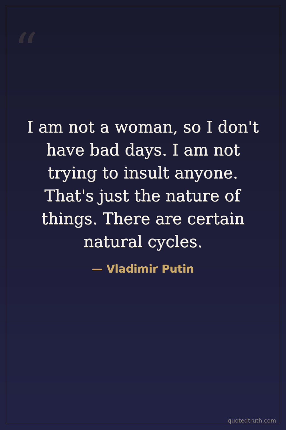 I am not a woman, so I don't have bad days. I am not trying to insult anyone. That's just the nature of things. There are certain natural cycles.