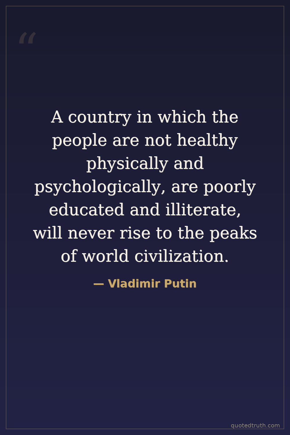 A country in which the people are not healthy physically and psychologically, are poorly educated and illiterate, will never rise to the peaks of world civilization.