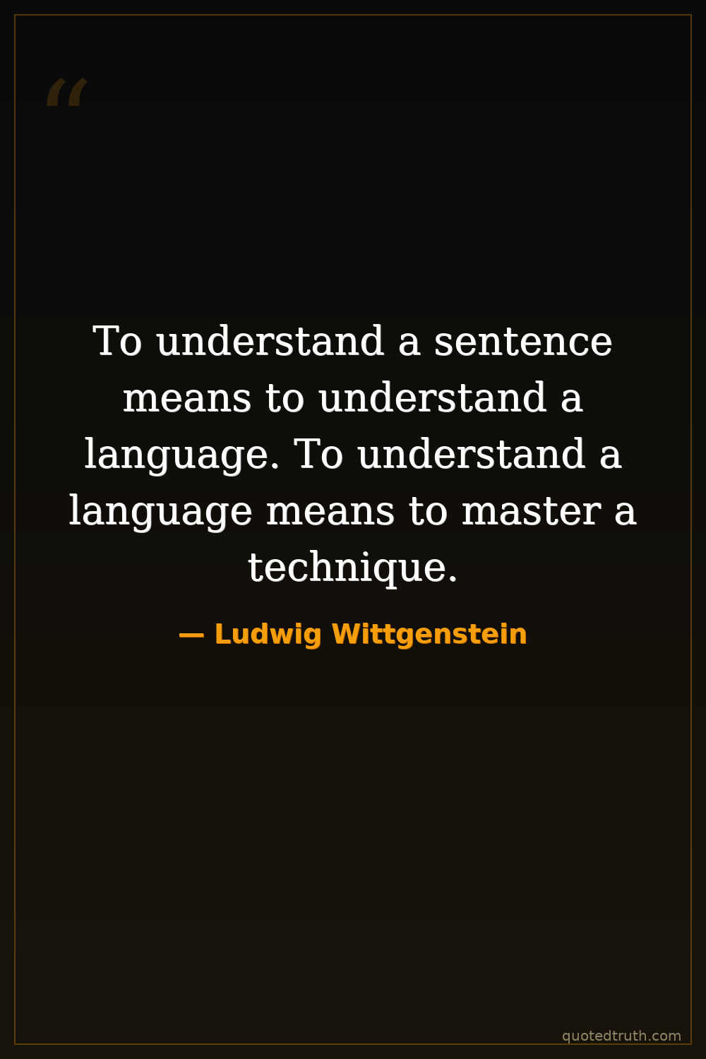 To understand a sentence means to understand a language. To understand a language means to master a technique.