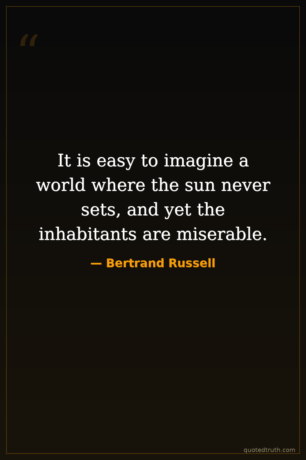 It is easy to imagine a world where the sun never sets, and yet the inhabitants are miserable.