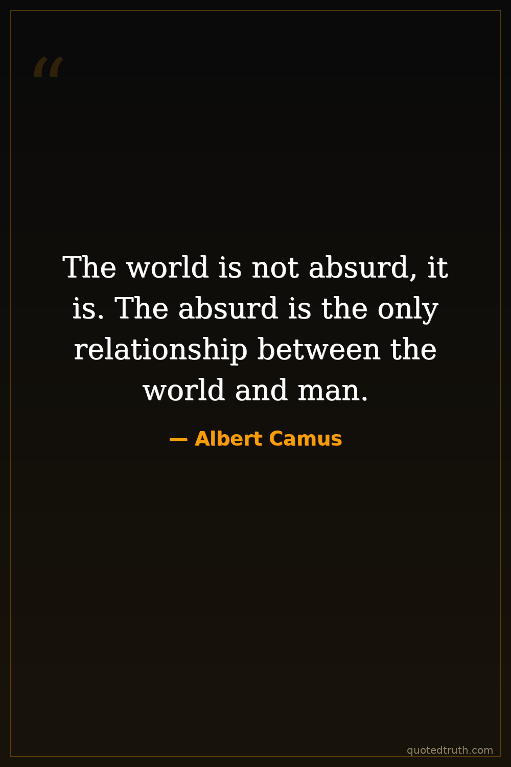 The world is not absurd, it is. The absurd is the only relationship between the world and man.