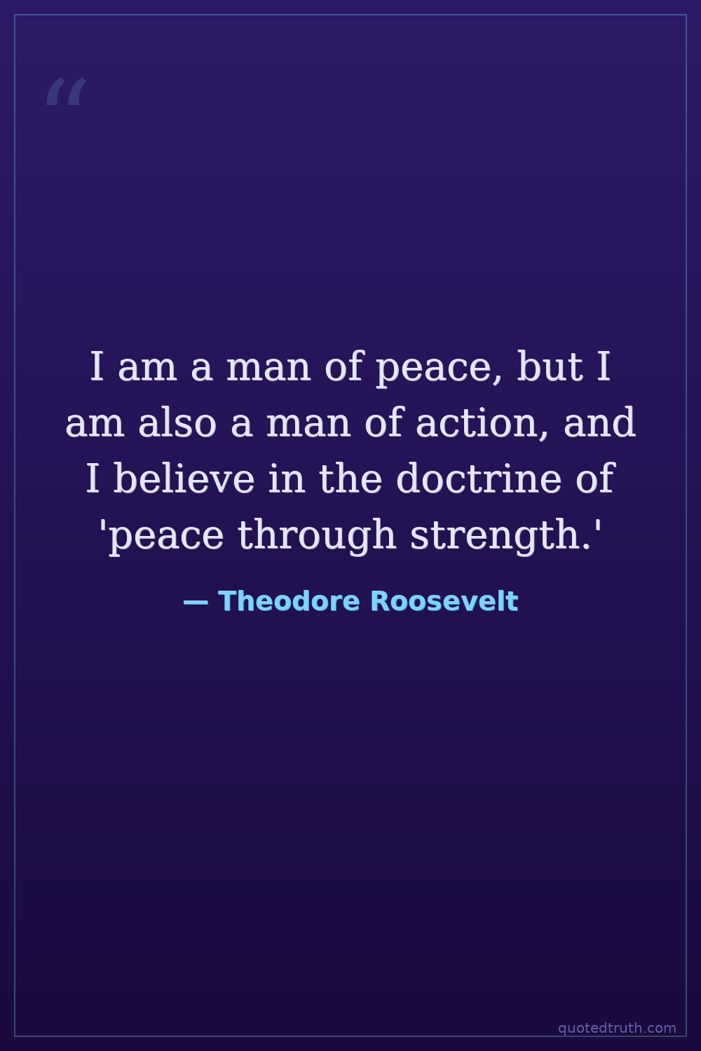 I am a man of peace, but I am also a man of action, and I believe in the doctrine of 'peace through strength.'