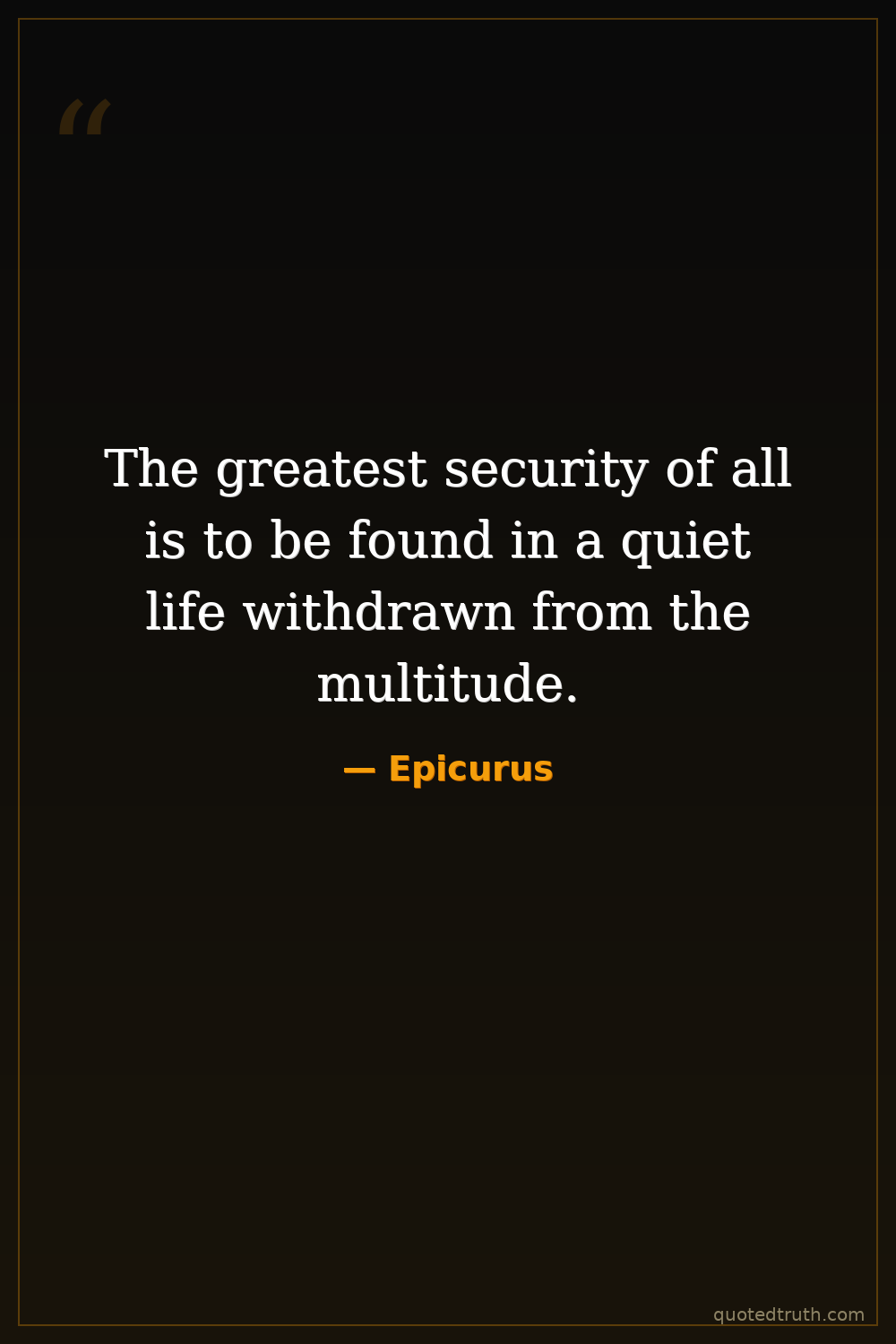 The greatest security of all is to be found in a quiet life withdrawn from the multitude.